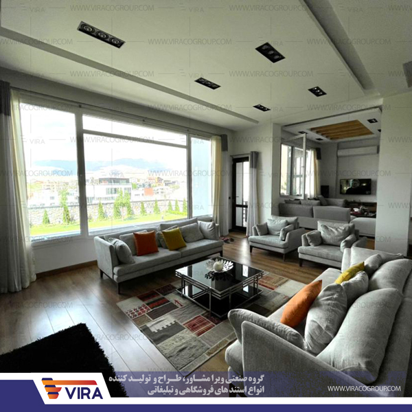 – استفاده از استندهای متحرک: استندهای قابلتنظیم و متحرک به شما امکان میدهند تا چیدمان را به سرعت تغییر داده و فضا را پویا نگه دارید.